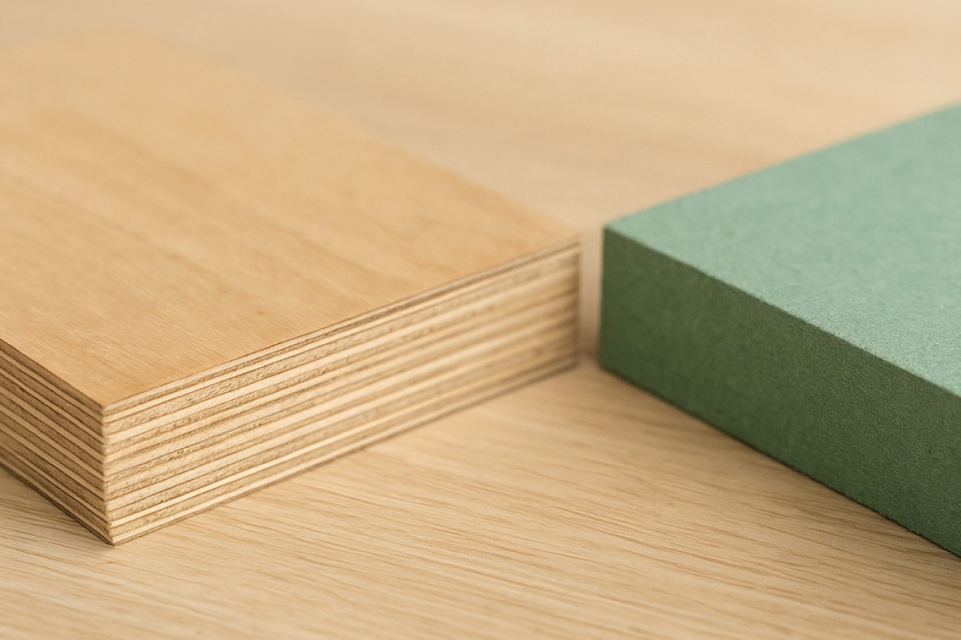 | โครงสร้างภายใน | ไม้จริงหลายชั้น อัดสลับเสี้ยน ทำให้แข็งแรงและยืดหยุ่นสูง | ผงไม้และกาวอัดแน่น เป็นเนื้อเดียวกันทั่วแผ่น |