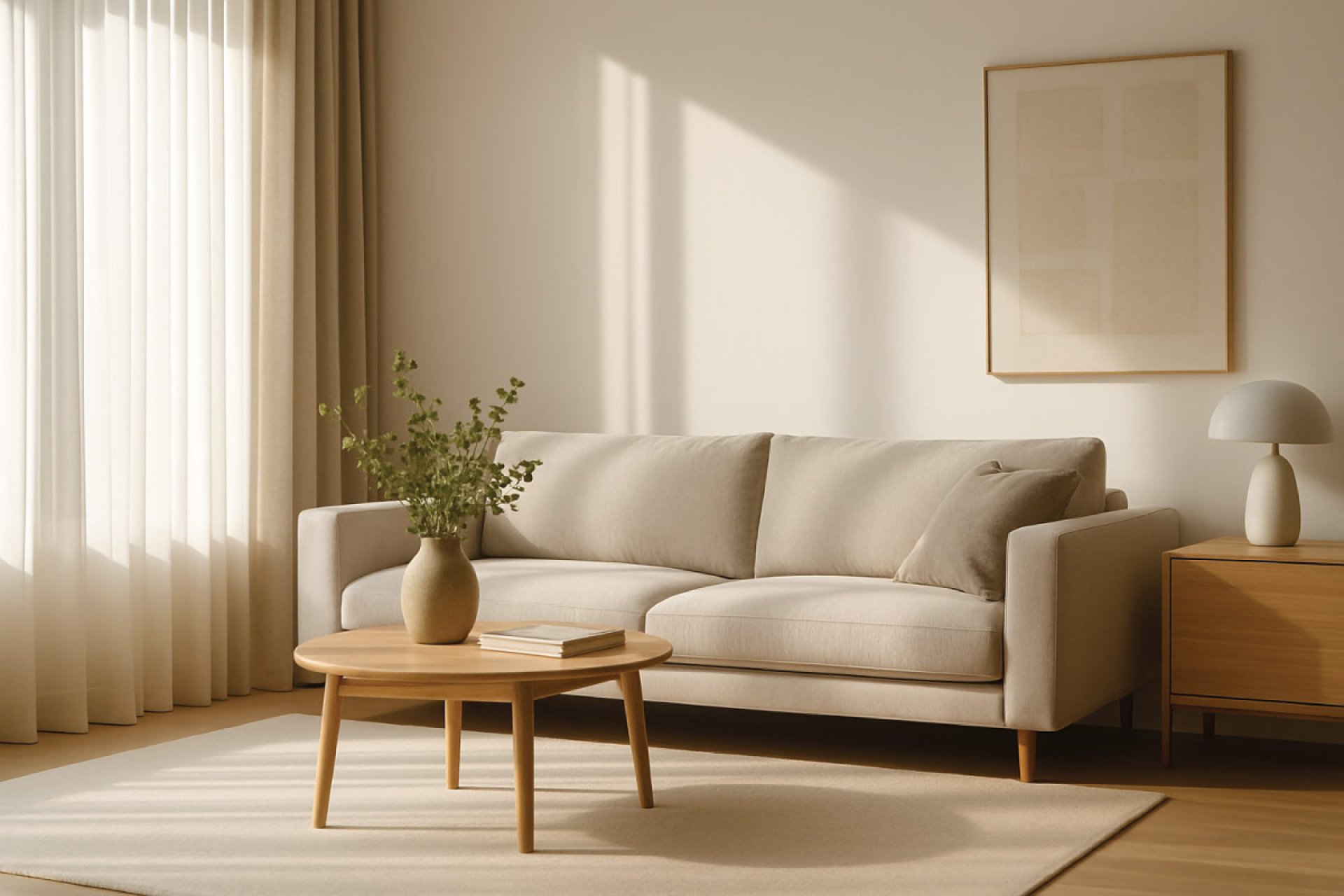 วัสดุอย่างผ้าม่านโปร่งหรือพื้นไม้โทนอ่อนสามารถสะท้อนแสงให้นุ่มลง ทำให้บ้านดูสบายตาและ หายใจได้